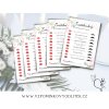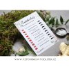 Jemně zpracovaná kartička, kterou můžete položit na svatební tabuli a vaši svatební hosté zakroužkují pro ně "správné odpovědi" :) a své tipy si podepíší.