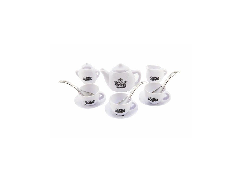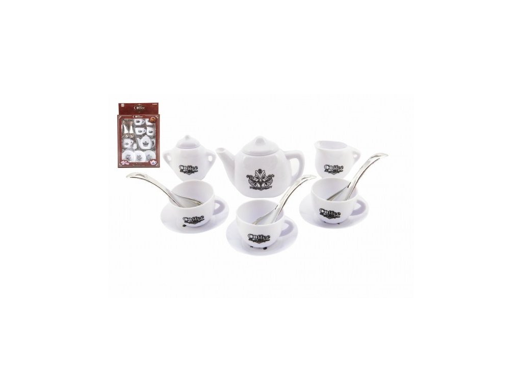 Sada obsahuje 3 šálky s podšálky, lžičky, konvičku s víčkem, menší konvičku na smetanu a cukřenku.