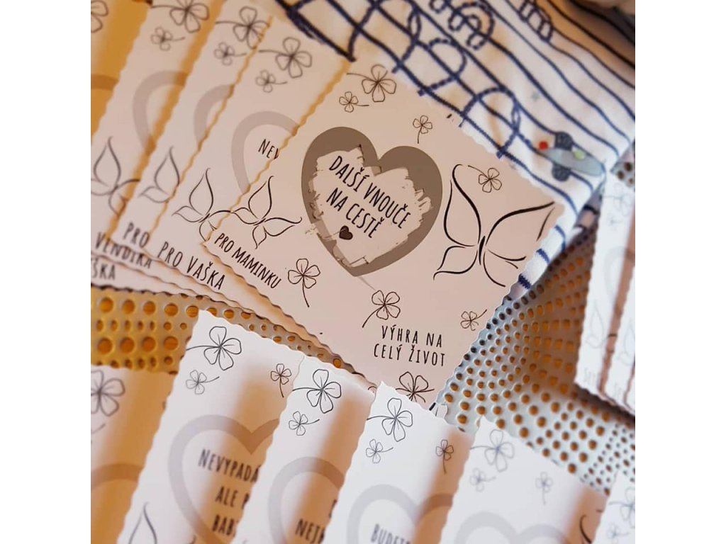 - Ve 3 kroku objednávky (po výběru dopravce a způsobu úhrady) zaškrtněte dole "Zadat poznámku pro prodejce" a uveďte své požadavky stylem: Viditelné Setři mě / Výhra na celý život apod, a poté k jednotlivým kartičkám např: