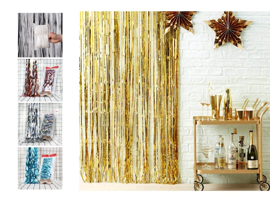 Dolaďte svoji novoroční, narozeninovou nebo jinou oslavu k dokonalosti a utvořte si pomocí třásňových závěsů foto koutek, který dozdobíte balonky.