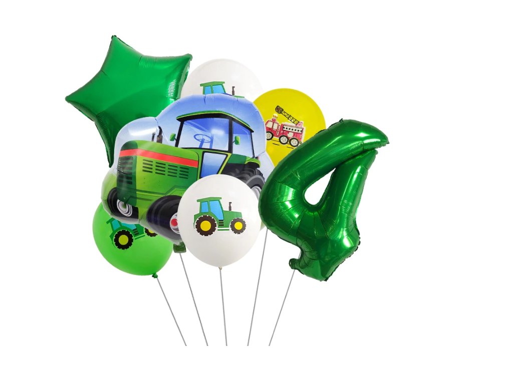 Set nádherných obřích narozeninových balonků s traktorem a zeleným číslem , které nesmí chybět na narozeninové oslavě.