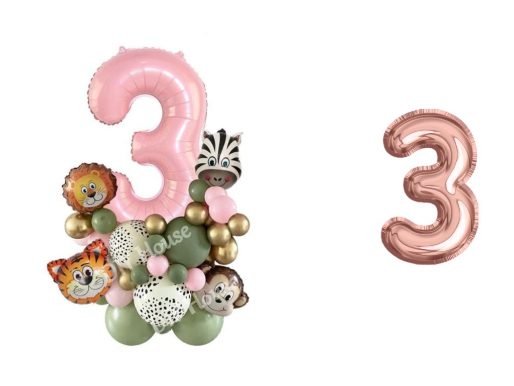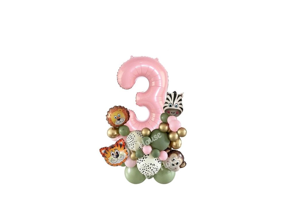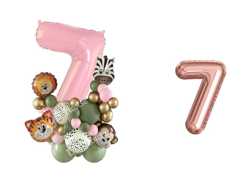 Set nádherných narozeninových balonků se zvířátky z divočiny a s růžovým číslem, které nesmí chybět na narozeninové oslavě.