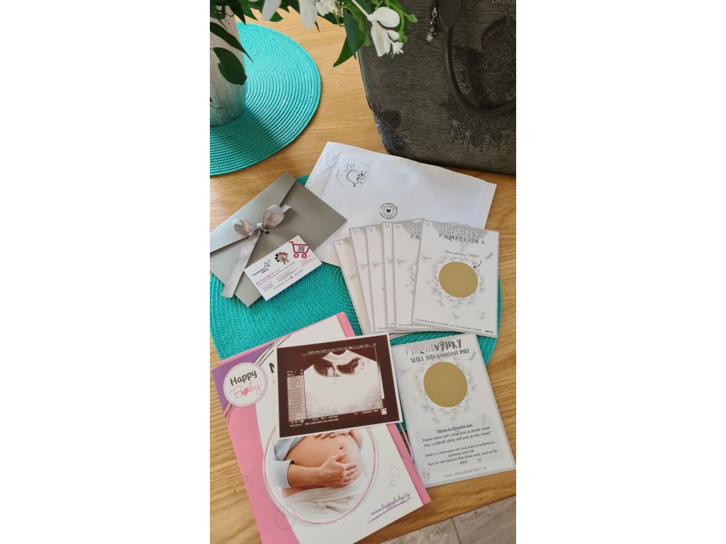Kvalitně zpracované OBOUSTRANNÉ oznámení TĚHOTENSTVÍ v podobě stíracího losu.